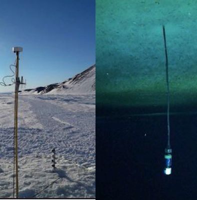 : FRF-2 baseline station with TLT-32 acoustic receiver below the ice.
